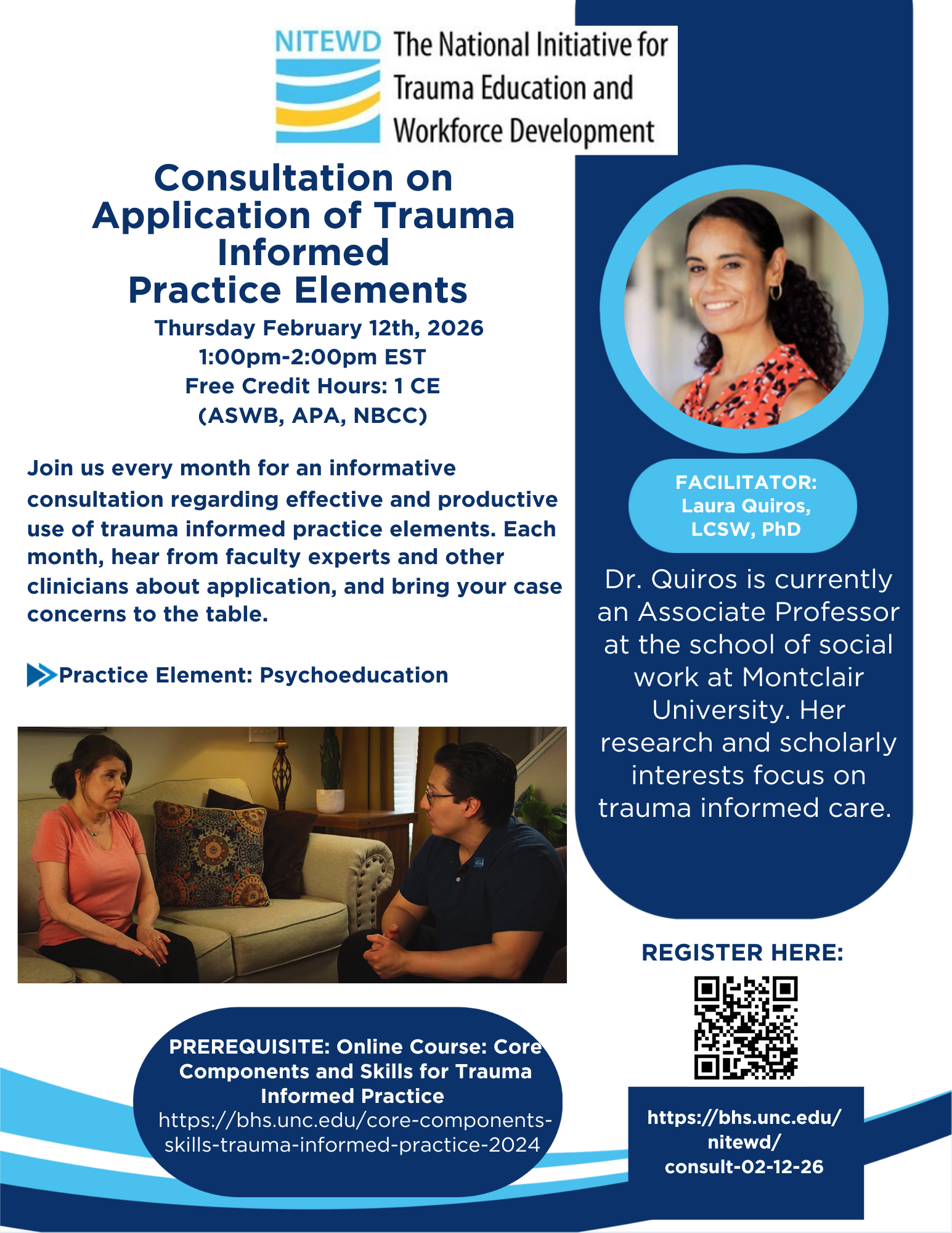 Consultation on Application of Trauma Informed Practiced Elements Thursday, February 12, 2026 1:00 PM 2:00 PM Google Calendar ICS Register here
